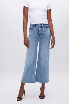 A super sexy waist cinching style, designed with a form-hugging fit from your waist to your thighs. Featuring a leg-lengthening high-rise and cropped wide loose legs, this effortlessly flattering style sculpts and shapes your waistline, giving you a defined hourglass silhouette that will make heads turn. Crafted from premium, high-quality denim, our Good Waist Palazzo Cropped Jeans offer exceptional stretch and shape retention, ensuring a comfortable fit that moves with you throughout the day.