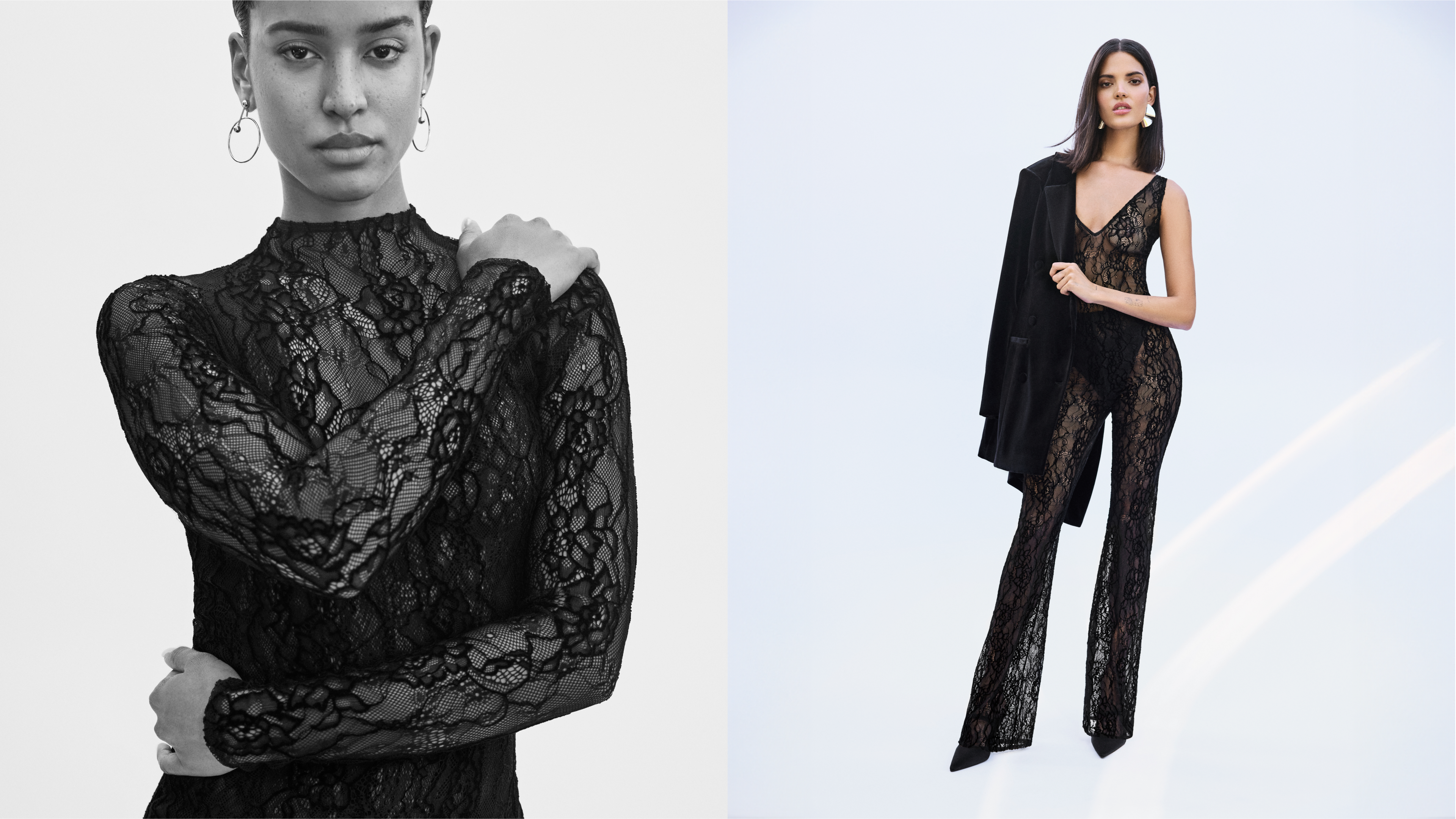 Velvet and lace have forever elegance, but we’re flipping the script with bold, modern pieces made to stun. Picture lace leggingsOpens in a new window and a workwear-inspired velvet dressOpens in a new window or a show-stopping strapless velvet jumpsuitOpens in a new window. Of course, we’ve got the iconic black velvet dressOpens in a new window, but don’t miss the unexpected must-haves you didn’t even know you needed. Our stretch velvet fabric and lightweight lace fabrics are designed to move with you, whether it’s day or night. Both materials feel luxuriously soft and include a touch of nylon and elastane for a flexible, comfortable fit that flatters every curve.